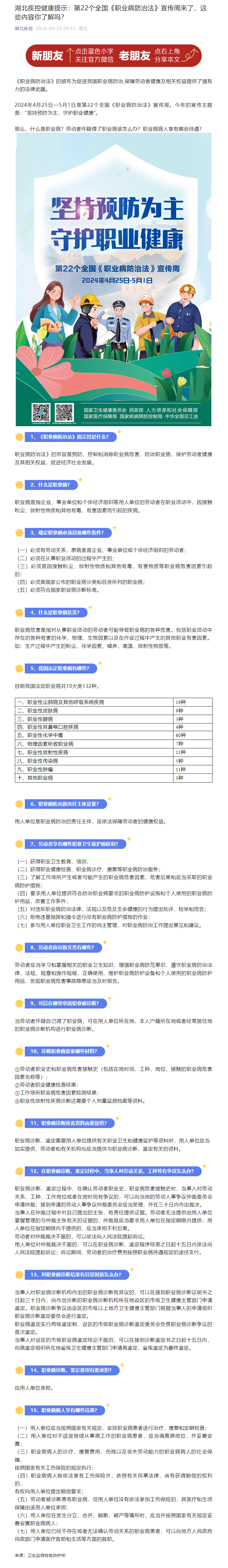 湖北疾控健康提示:第22個(gè)全國(guó)《職業(yè)病防治法》宣傳周來(lái)了,這些內(nèi)容你了解嗎?