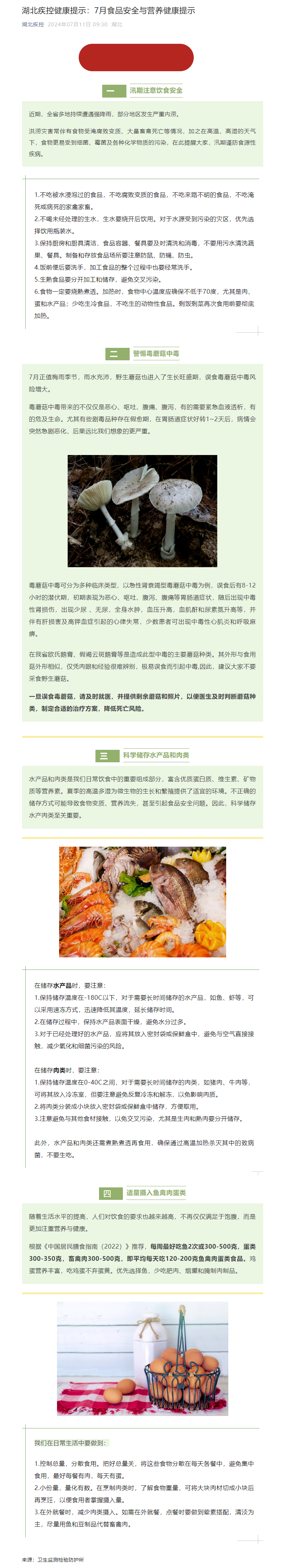 湖北疾控健康提示:7月食品安全與營養健康提示