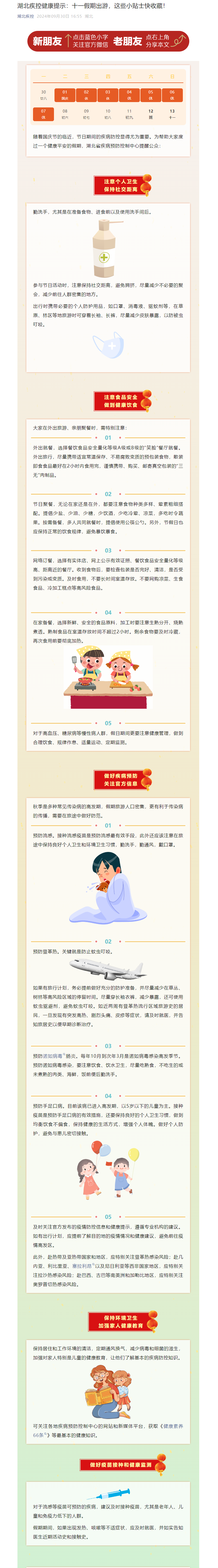 湖北疾控健康提示:十一假期出游,這些小貼士快收藏!