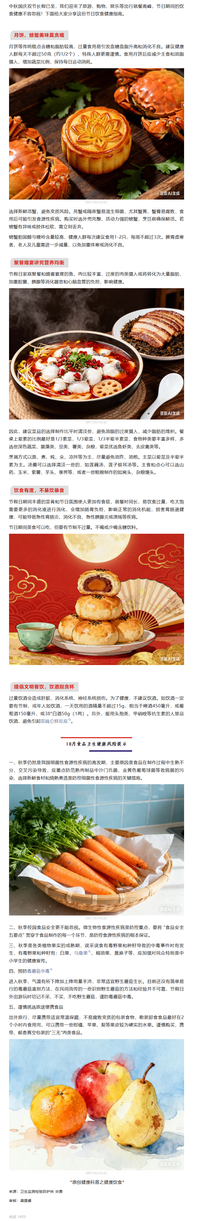 中秋國慶雙節飲食健康指南:美味與營養平衡的智慧——10月營養健康與食品安全提示