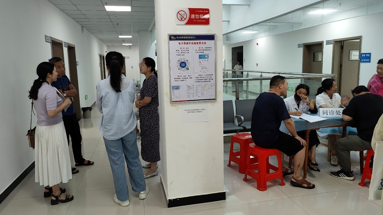 三角洲社區(qū)作為京山市監(jiān)測(cè)點(diǎn)第三個(gè)開展現(xiàn)場(chǎng)的監(jiān)測(cè)單元,在總結(jié)群力村和光武嶺村兩個(gè)監(jiān)測(cè)單元前期現(xiàn)場(chǎng)經(jīng)驗(yàn)的基礎(chǔ)上,提前謀劃,精心組織,規(guī)范實(shí)施,將工作開展場(chǎng)地定在了新落成的京山市疾控中心大樓,為居民提供了開闊的體檢空間和涼爽的體檢環(huán)境,大大提高了調(diào)查對(duì)象的依從性。此外,京山市本次現(xiàn)場(chǎng)工作考慮到三角洲作為城區(qū)與前兩個(gè)農(nóng)村點(diǎn)位不同,主要是居民因工作、學(xué)業(yè)等原因體檢時(shí)間更加不穩(wěn)定,市疾控工作人員放棄了周末休息時(shí)間,將體檢時(shí)間拉長(zhǎng),覆蓋了周五至周日3天時(shí)間,為居民留足了選擇空間。
